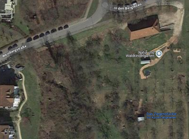 Wie jedes „Stückle“ hat auch das Ziegenstückle keine eigene Adresse. Du findest uns in Reichenbach an der Fils, unterhalb des Schafhauses und des Natur- und Waldkindergartens – dort, wo die Weinbergstraße, die Danziger Straße und die Straße „In den Bergteilen“ aufeinandertreffen. Folge einfach dem Trampelpfad.